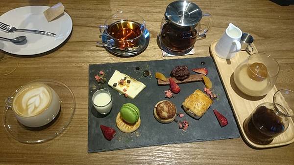 這家是老爺飯店集團分支出來餐飲業 位於捷運松江南京站 老爺. 小花園 是在一條幽靜的巷弄裡 裝潢格局讓人感覺很舒服 而且這家店也有架設一台投影機 然後餐點跟服務也都很讓人會一直會想要一來再來 這盤是下午茶組合 抹茶馬卡龍 跳跳糖巧克力 麵包布丁 蔓越莓司康 杏桃乾 杏仁布列塔尼 為皮泡芙 巧克力沙布列 冰滴咖啡 杯裡是咖啡冰球 依據服人員說法是要倒八分之一滿在杯子裡先喝原味 就像在喝威士忌的感覺 再來如果想加糖與奶精即可